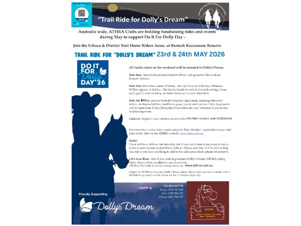 EDTHRA TRAIL RIDE FOR 'DOLLY'S DREAM' 23rd & 24th May 2026